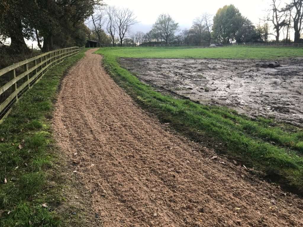 The exercise track had an old tried wax surface which wasn’t preforming at it best, we removed the top 50mm and any contaminated areas and overlaid with 75mm of Equi-Ride ProWaxed.